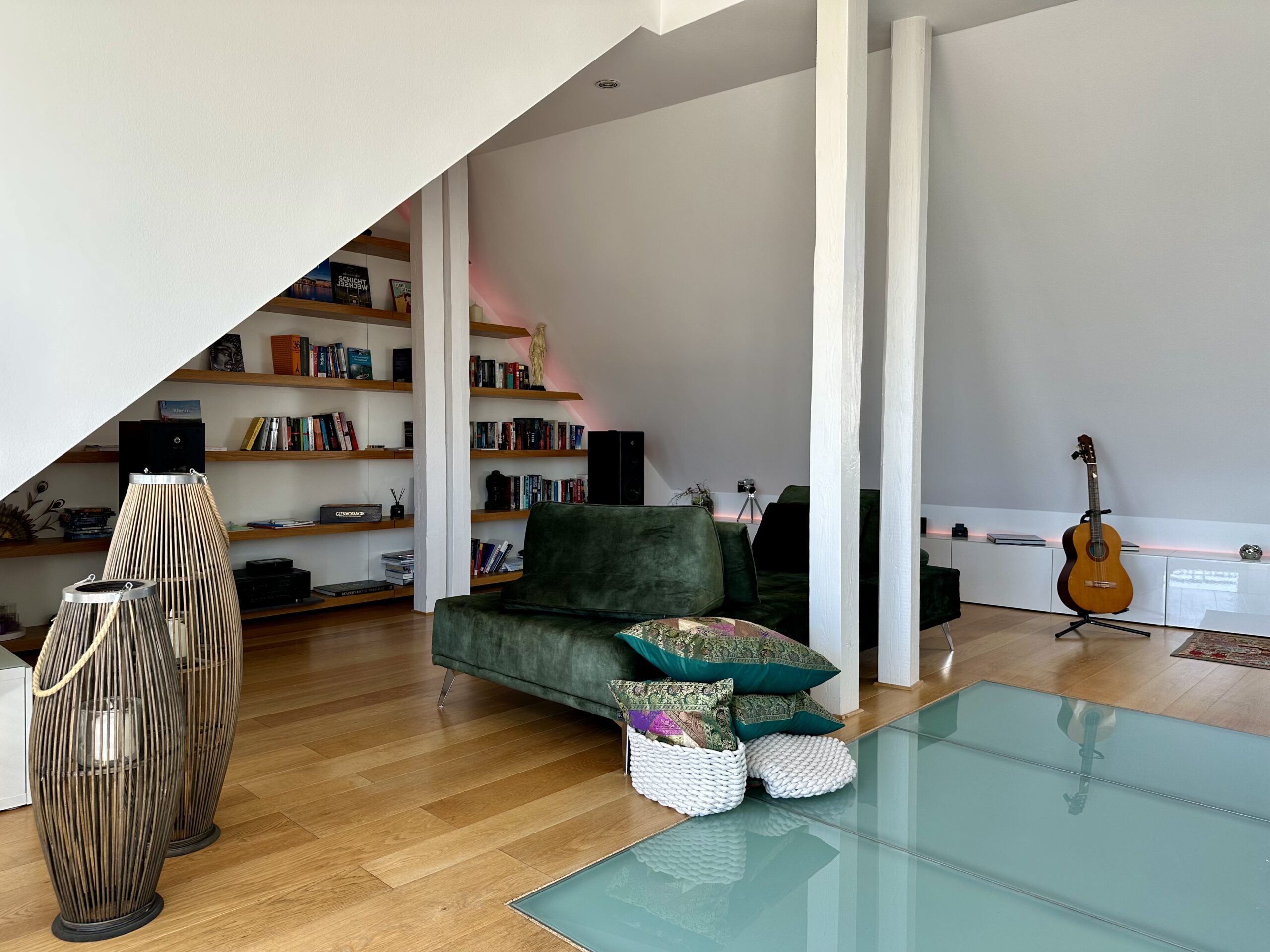 * Altbau trifft moderne Architektur: sichtbare Stahlträger, gläsernes Bodenelement, indirekte Beleuchtung!