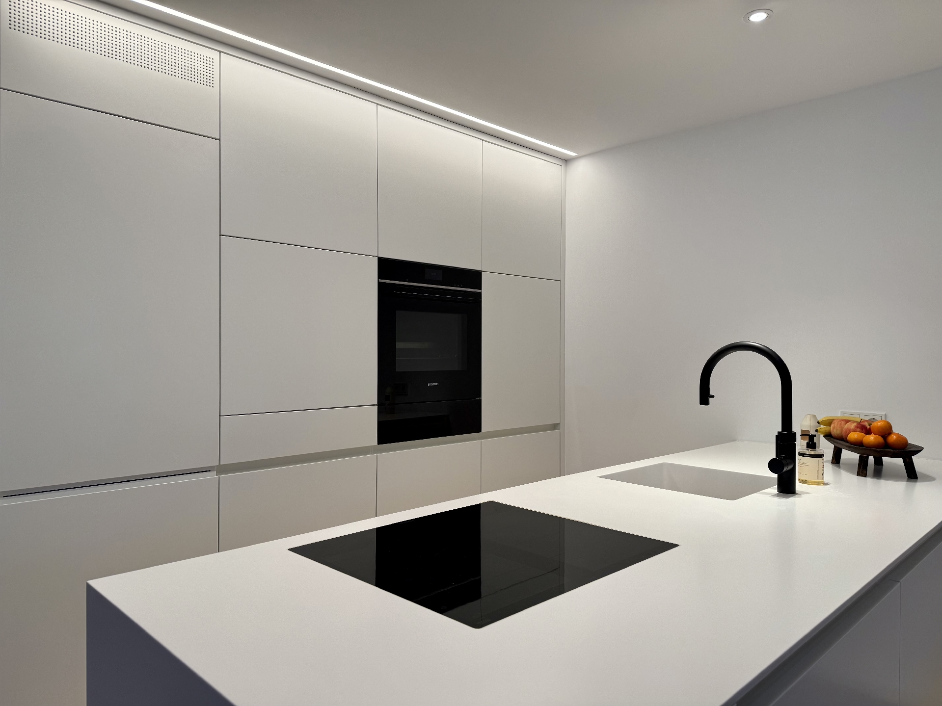 Design-Einbauküche inklusive sämtlicher Elektrogeräte, ausgestattet mit