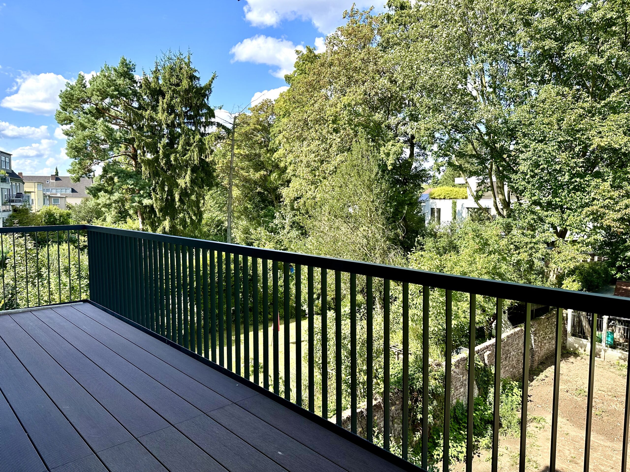 Über eine großzügige, raumhohe Fensterschiebeanlage gelangen Sie auf die Balkonfläche (Loggia), die dank ihrer geschützten Lage auch an regnerischen Tagen zum Verweilen einlädt. Der Blick schweift ins Grüne der umliegenden Gärten mit altem Baumbestand und schafft eine angenehme, ruhige Wohnatmosphäre.