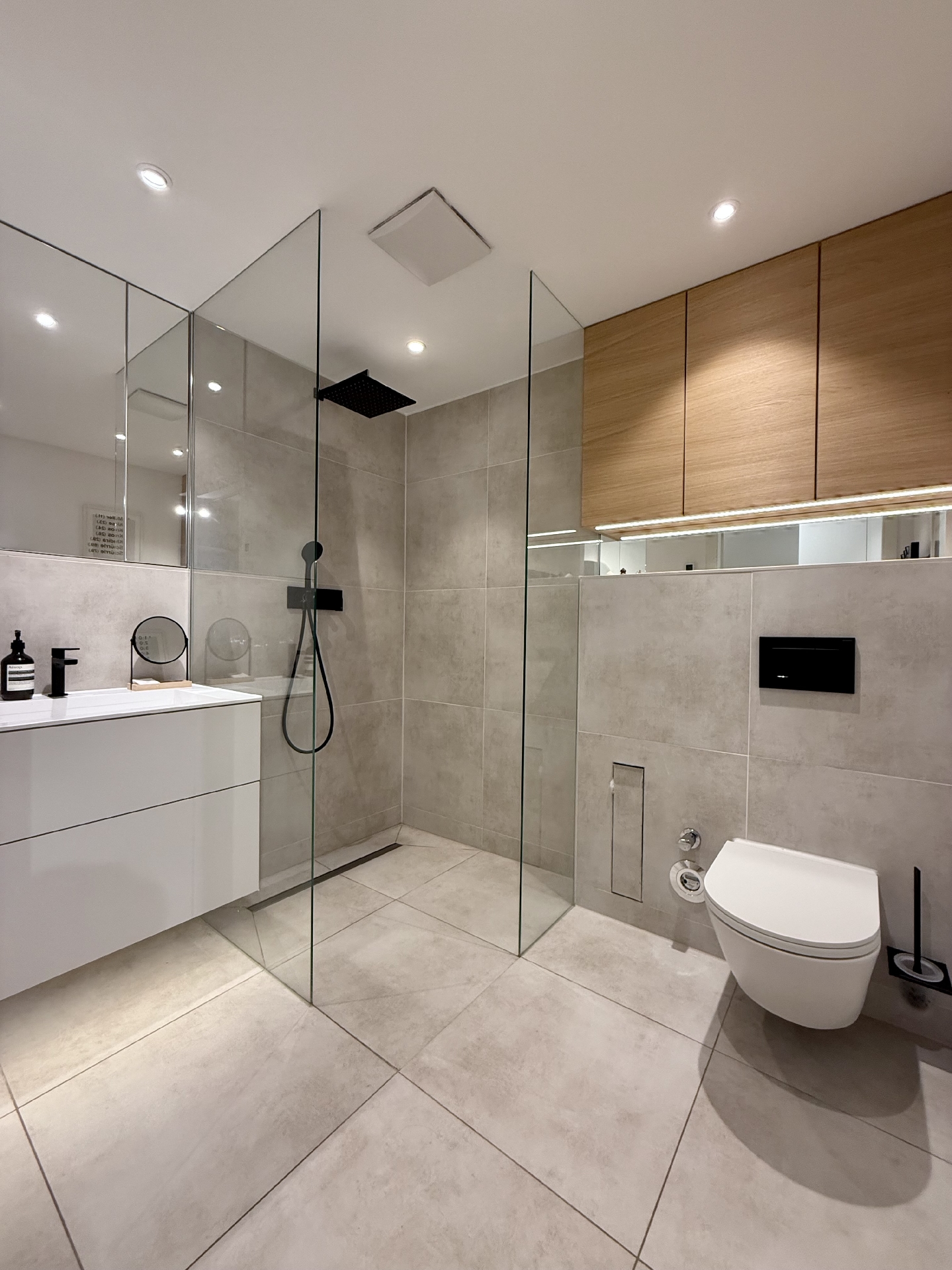 Ein modernes Duschbad sowie ein weiteres Badezimmer mit Badewanne lassen keine Wünsche offen. Hochwertige Materialien, bodengleiche Dusche und stilvolle Ausstattungsdetails unterstreichen den exklusiven Anspruch der Wohnung.