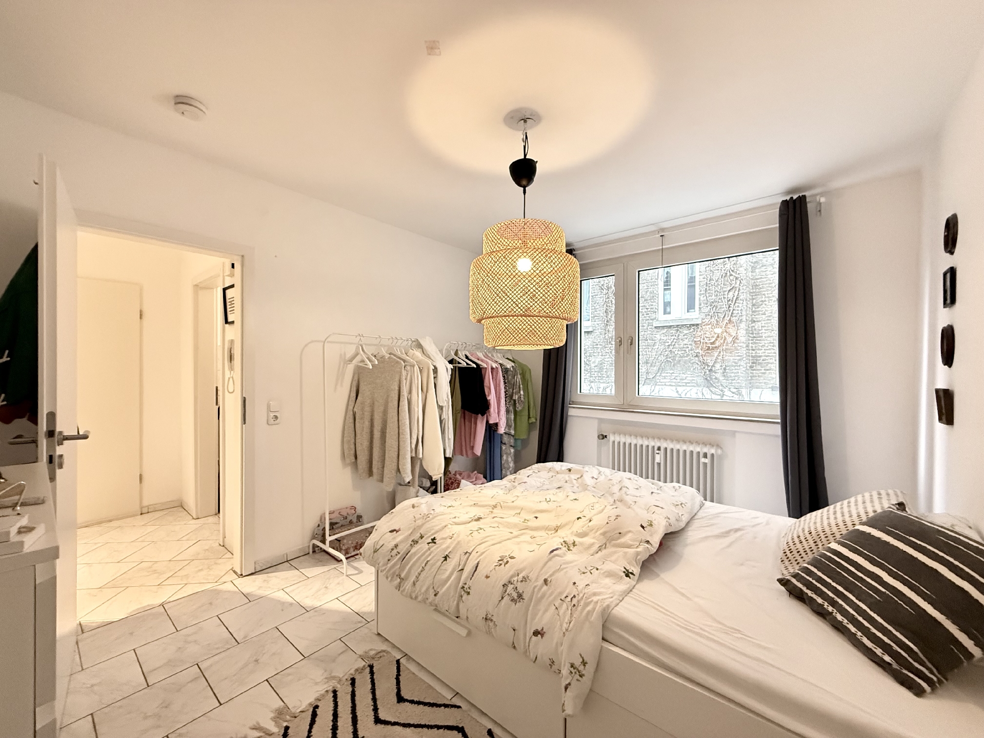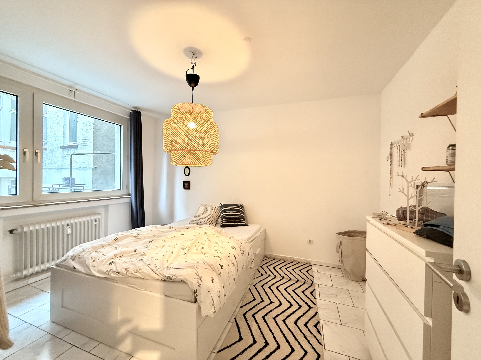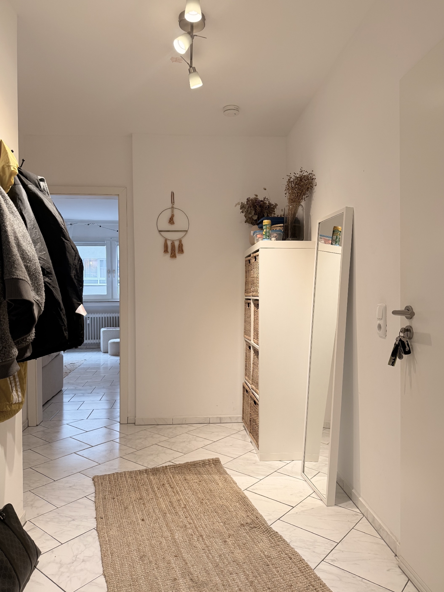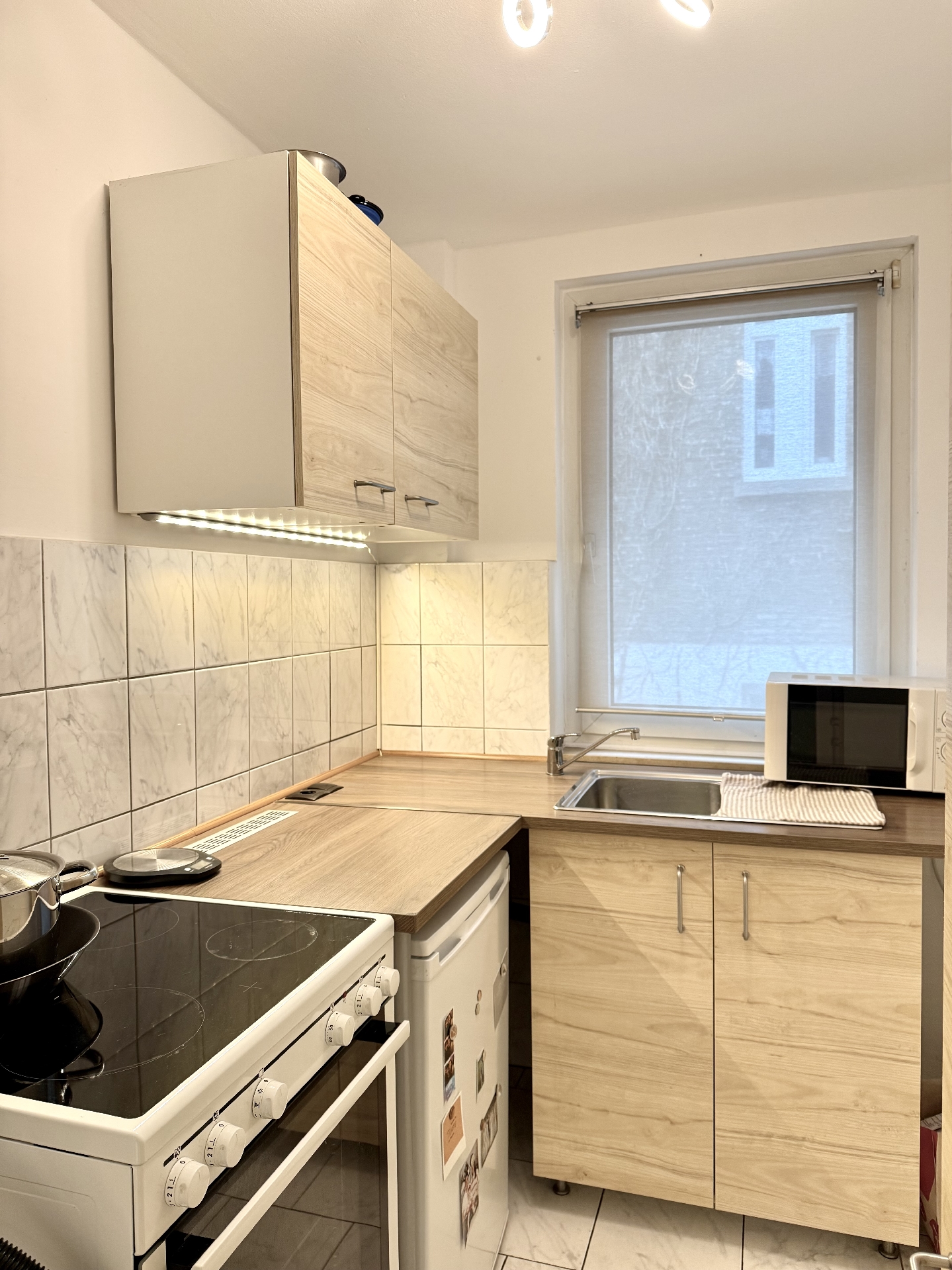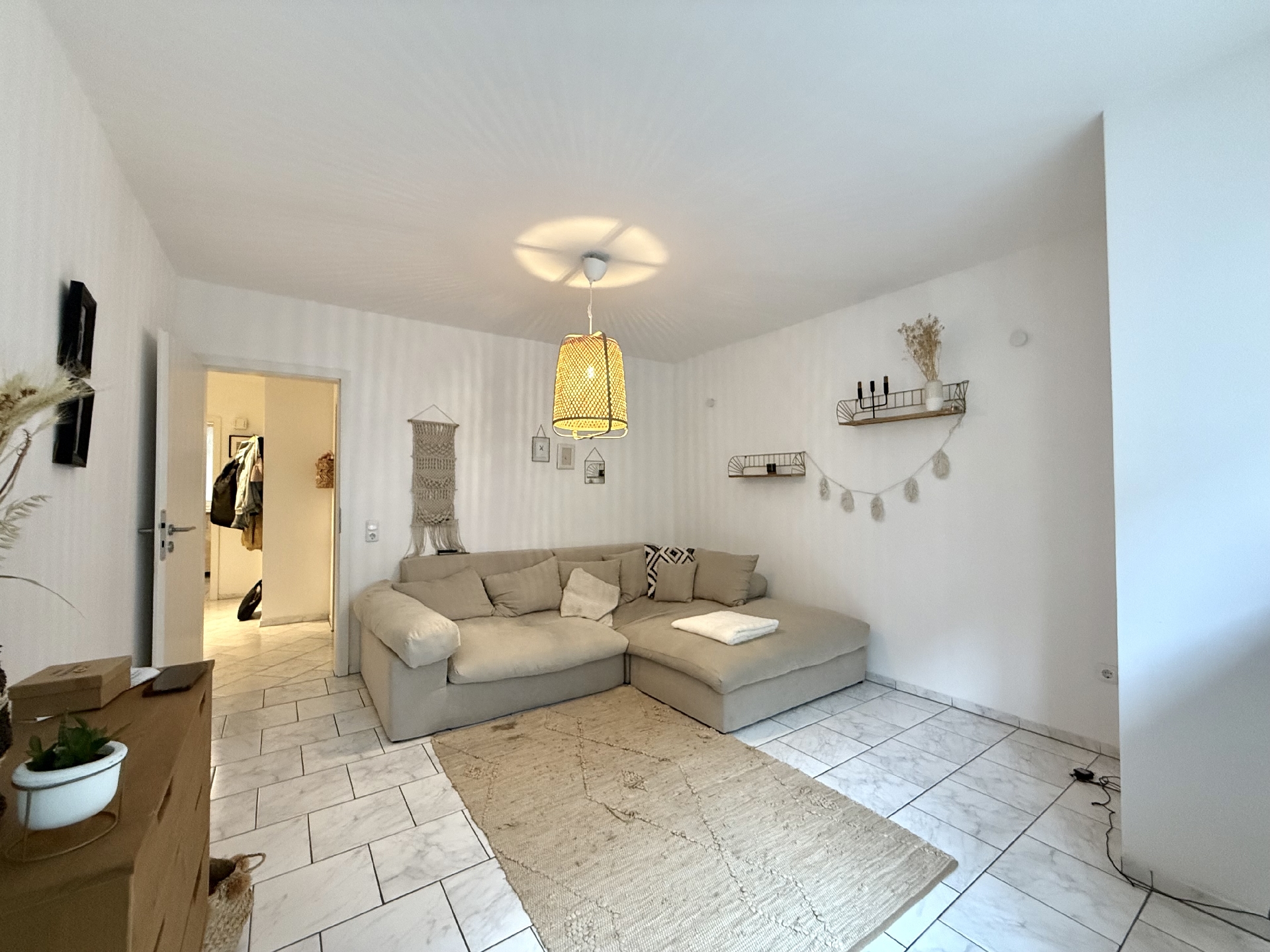 * pflegeleichte helle Bodenfliesen in der gesamten Wohnung