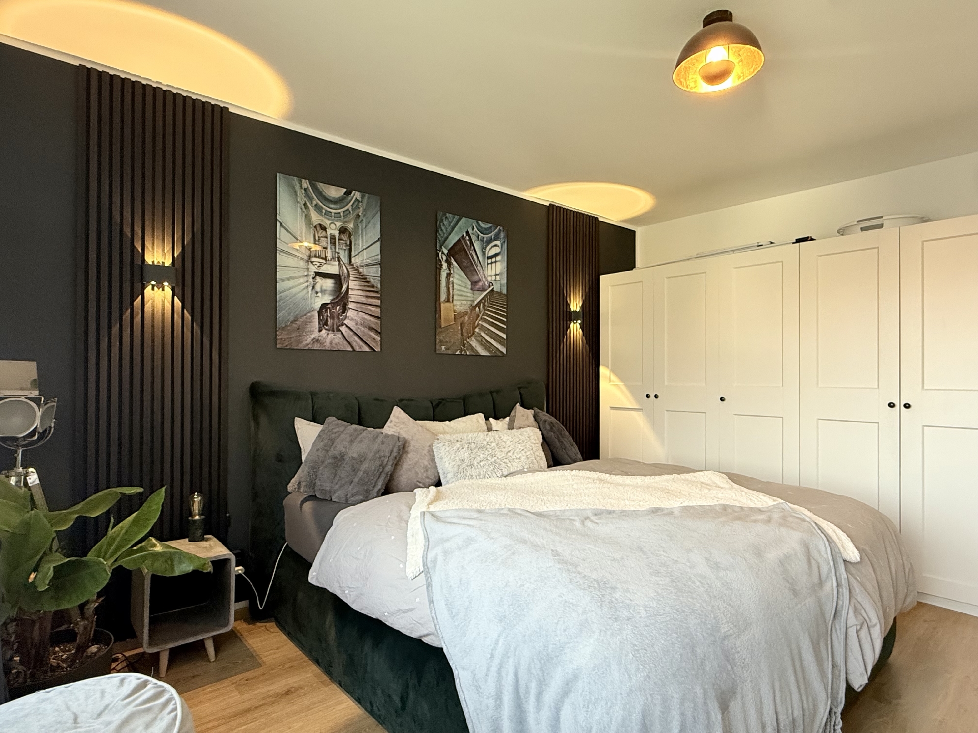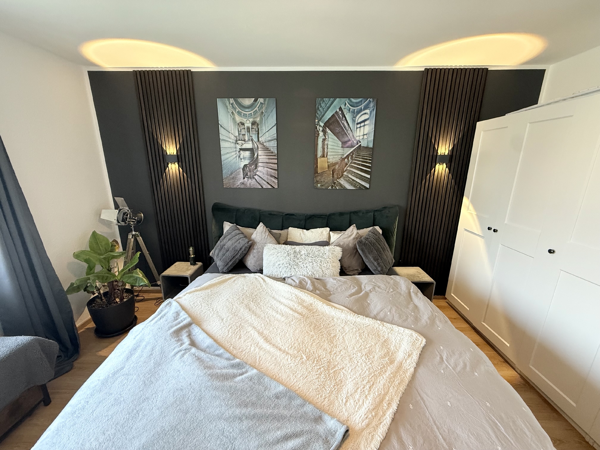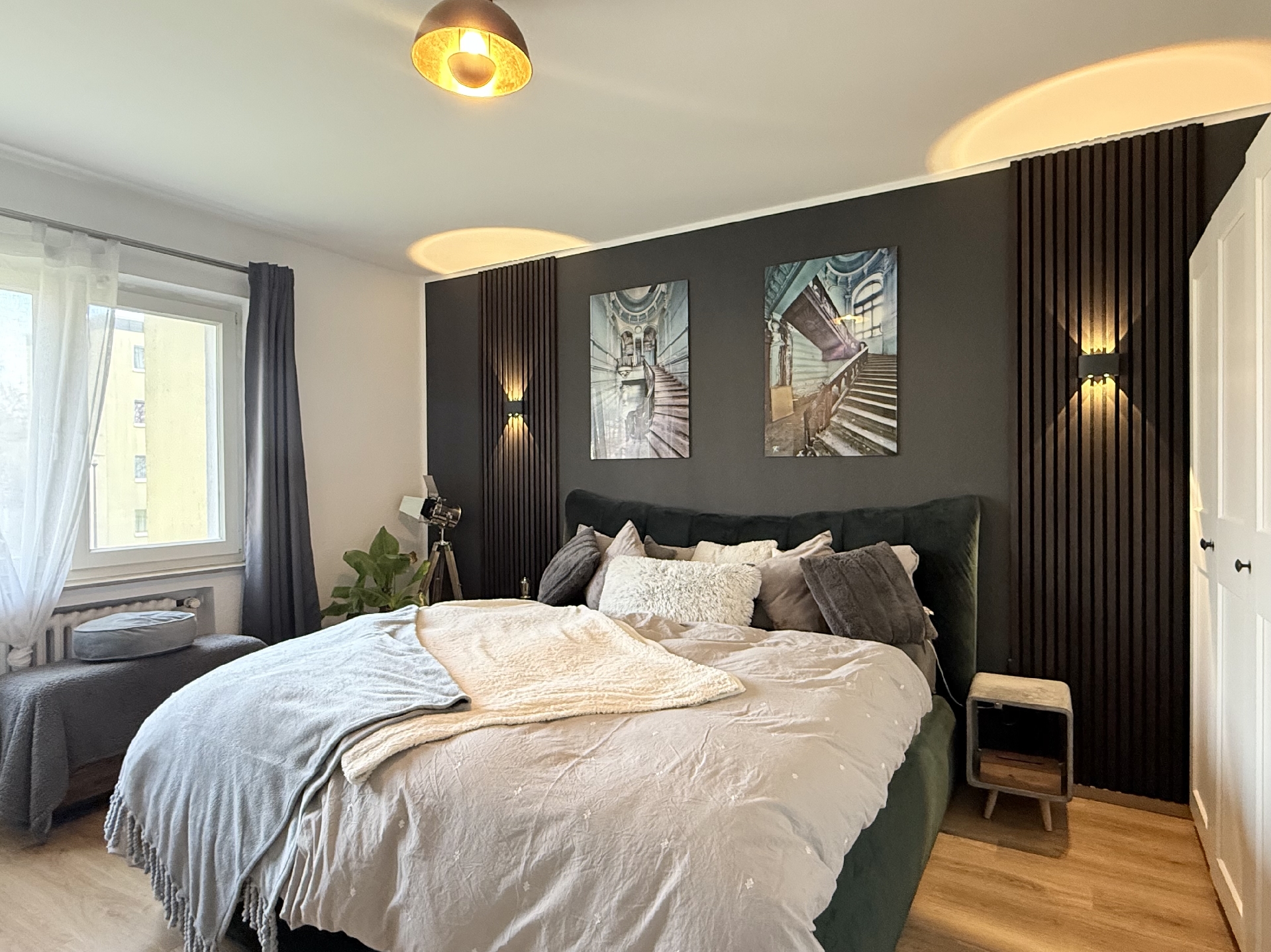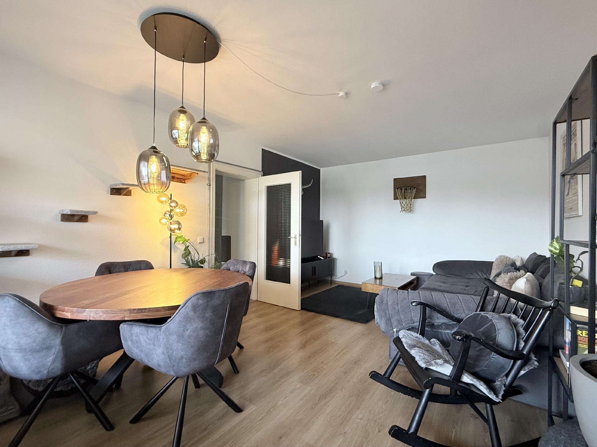 * schöner moderner Laminatboden in Wohnraum und Schlafzimmer