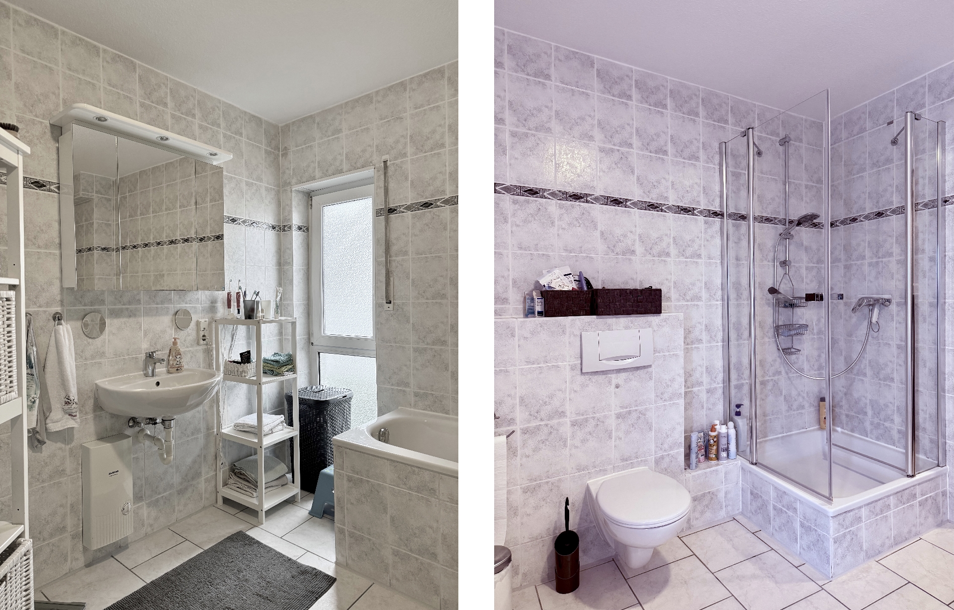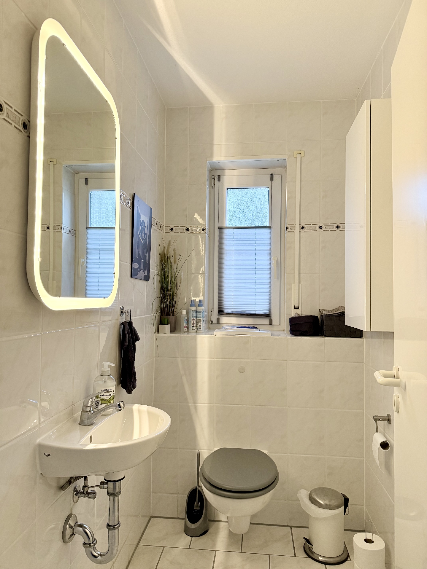 Küche, Badezimmer und Gäste-WC sind geschmackvoll und praktisch gefliest und wirken ebenso modern wie langlebig. Sämtliche Kunststofffenster verfügen über eine Isolierverglasung und sind mit Rollläden ausgestattet ideal für Energieeffizienz und angenehme Verdunkelung.