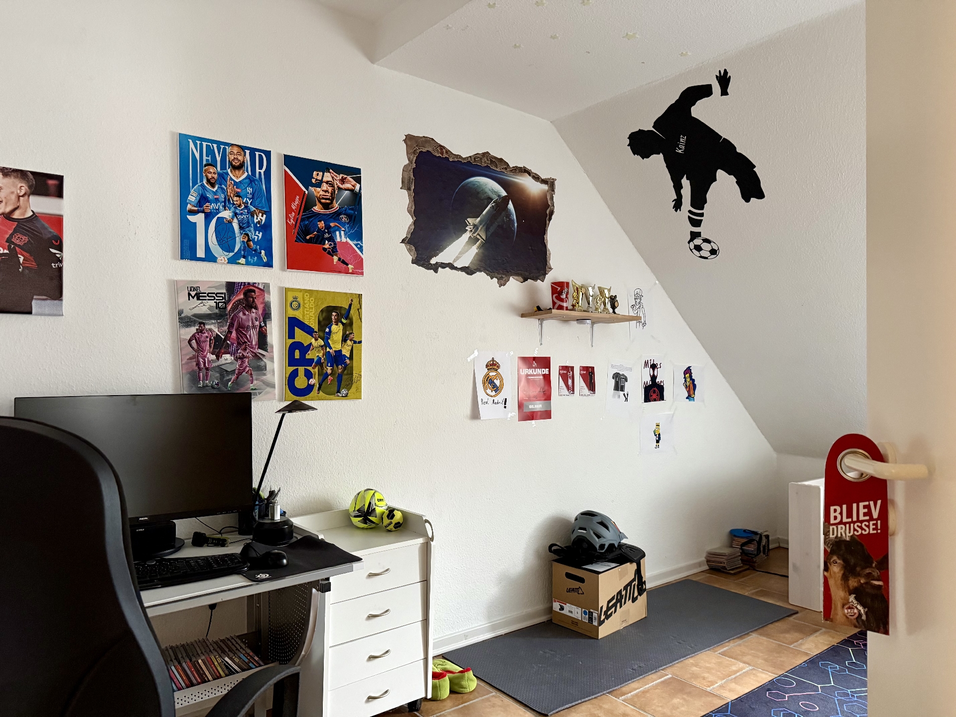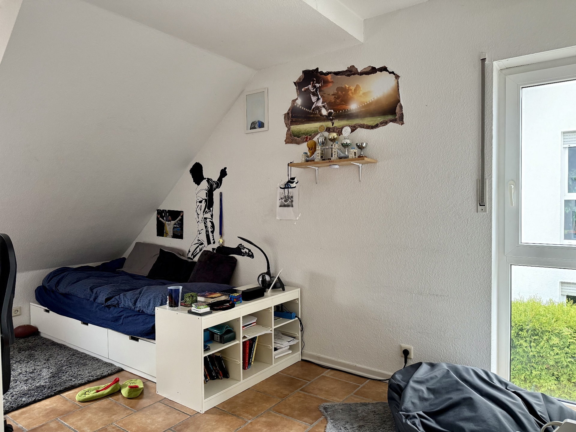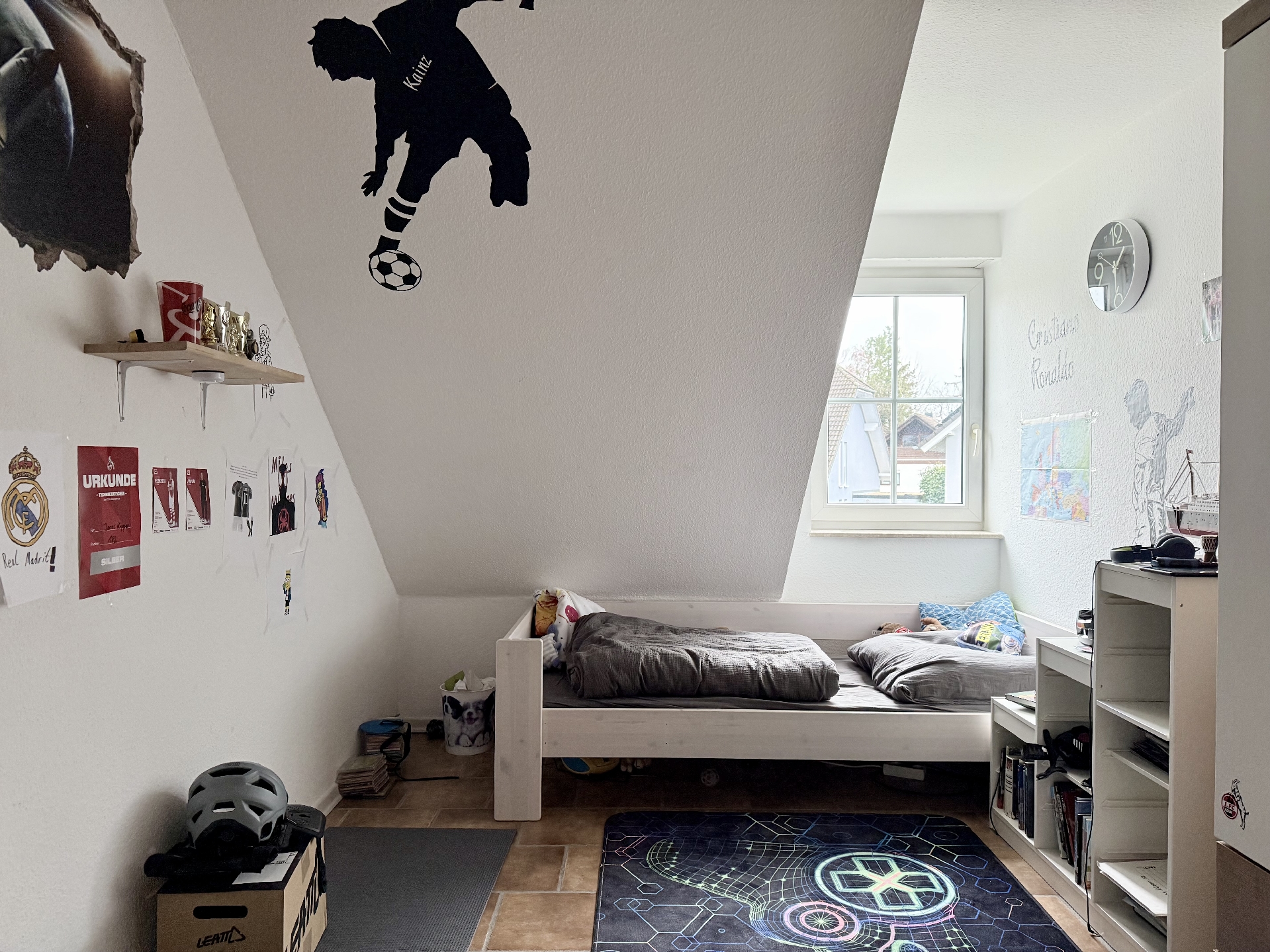 Das ausgebaute Dachstudio bietet ein weiteres, gemütliches Zimmer perfekt geeignet als Büro, Gäste- oder zusätzliches Kinderzimmer. Die charmanten Dachschrägen verleihen diesem Bereich eine besonders behagliche Wohnatmosphäre.