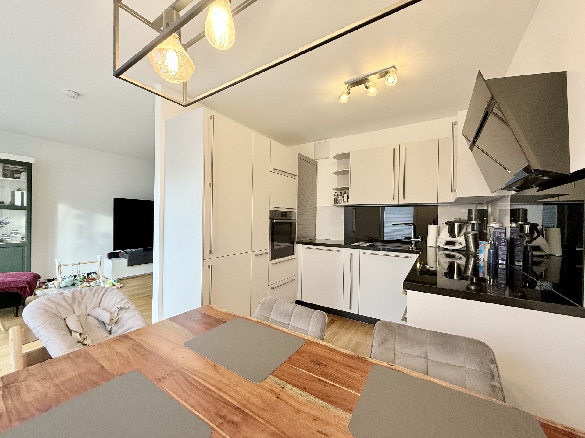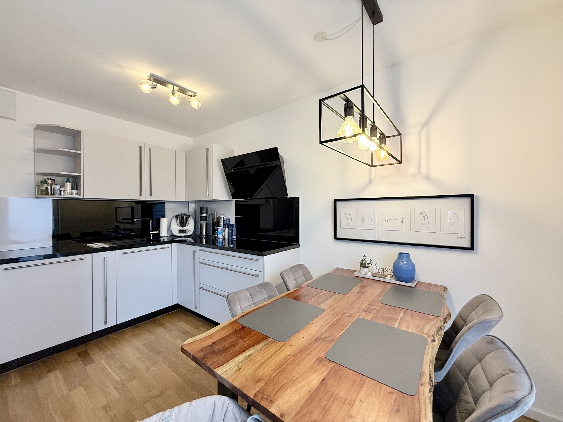 Die offene Küche mit Essbereich ist mit einer hochwertigen Einbauküche ausgestattet Die vorhandene, hochwertig ausgestattete Einbauküche ist fester Bestandteil der Mietsache – eine Abstandszahlung oder zweite Miete werden nicht fällig. Somit steht geselligen Kochabenden mit Freunden und Familie nichts mehr im Wege.